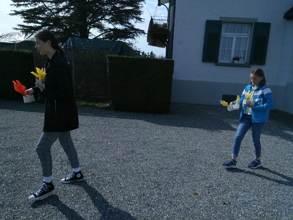Ein Osternest mit Osterei und einem herzlichen Gruss haben wir gebastelt und durch viele fleissige Ersatz-Osterhäsinnen und -hasen verteilen lassen: Firmlinge, Eltern mit Kindern, Angehörige der KiVo und des Pfarreirats und Hauptamtliche.